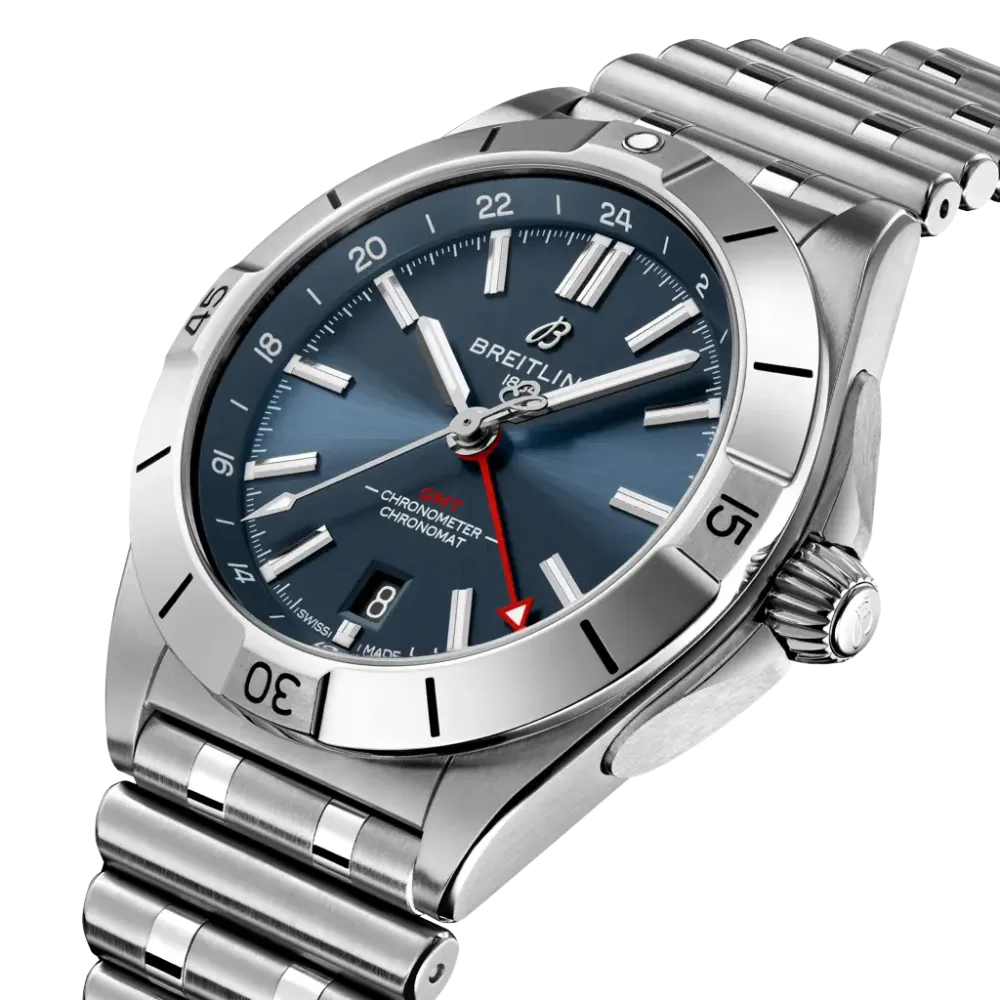 The Chronomat line is an iconic series from Breitling with a rich heritage rooted in precision and performance. The modern GMT 40 continues this legacy by offering a practical second time zone complication alongside classic Chronomat design cues such as a robust case and a distinctive bezel. Built with versatility in mind, it reflects Breitling’s dedication to creating timepieces that fit both daily wear and global travel.